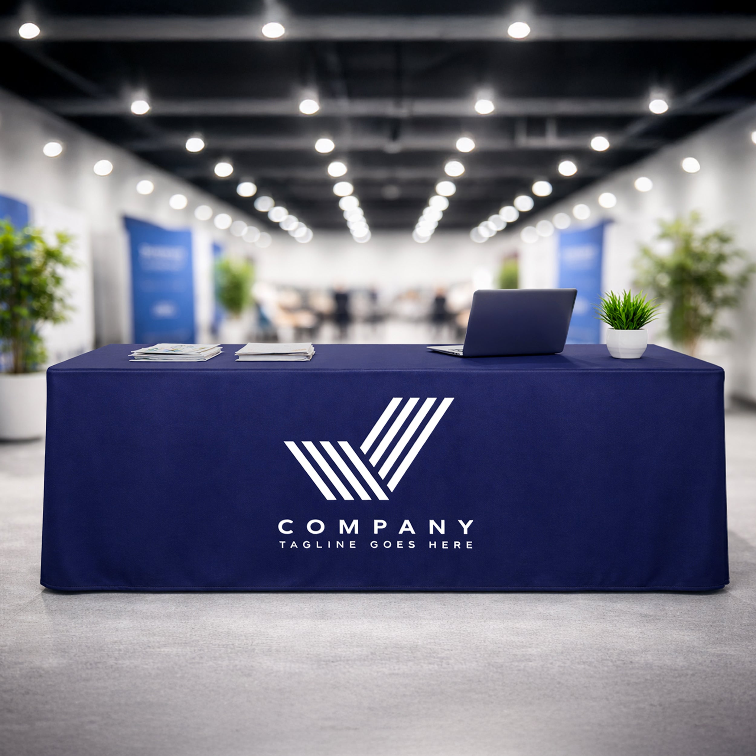 Increase your brand visibility and improve the look of your venue with our fitted table covers. Designed for both durability and style, these high-quality covers are perfect for trade shows, expos, and business meetings. They protect your tables and provide a sleek, professional appearance that draws attention. Ideal for making a memorable first impression, our fitted covers are crucial for any business seeking to stand out in a competitive market.