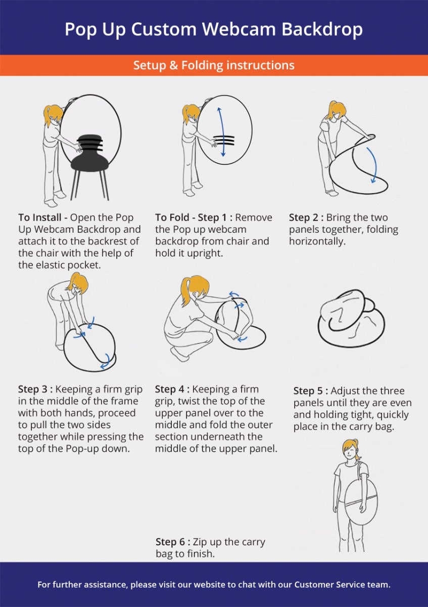 Choose from popular sizes of our foldable backdrop, designed for ease of use with a collapsible feature that allows it to shrink to a third of its original size, simplifying transportation with a carry bag. Customize your background for webcam using our online tools, templates, or by uploading your own designs. You can also work with a designer who can tailor it to your exact specifications.