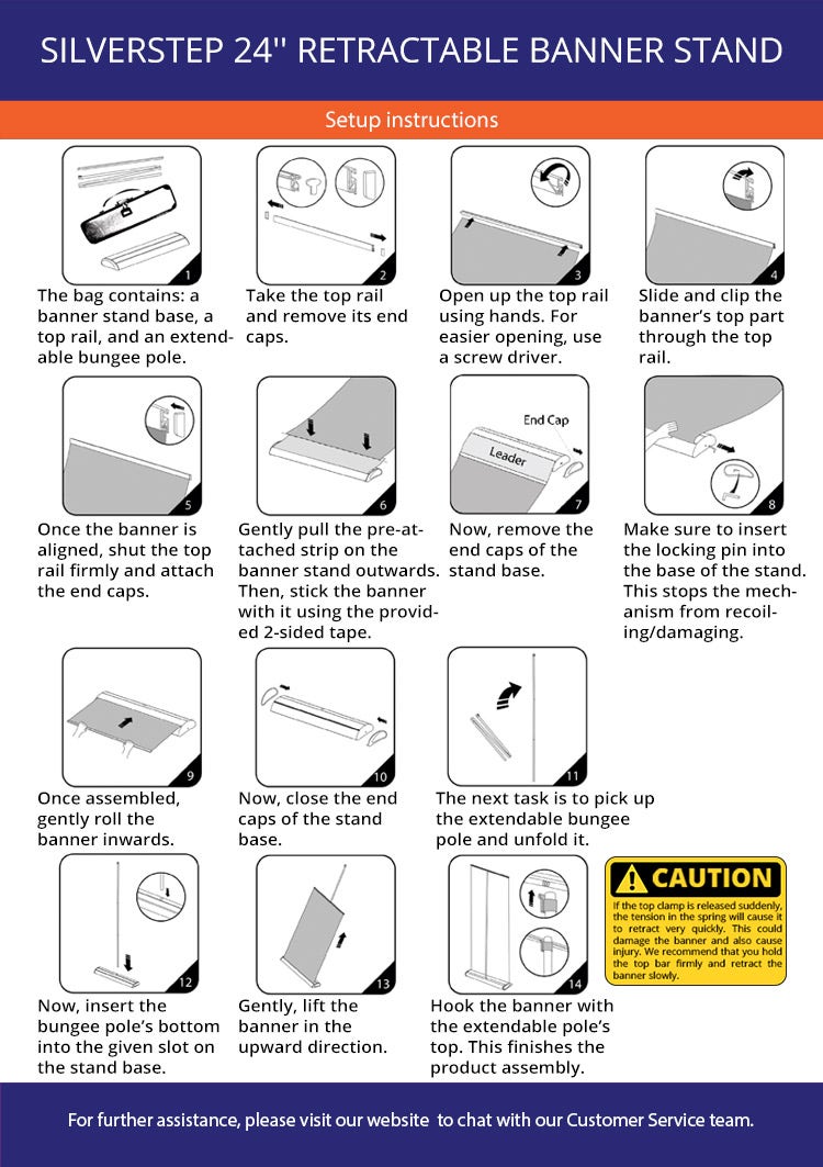 Perfect for trade shows, conferences, or any marketing event, our retractable banners with stand are designed to make your message pop. They're straightforward to assemble and can be set up swiftly using either the clamp bar or velcro for rapid banner mounting. Maintenance is straightforward - just gently wipe the banner with a soft, damp cloth.