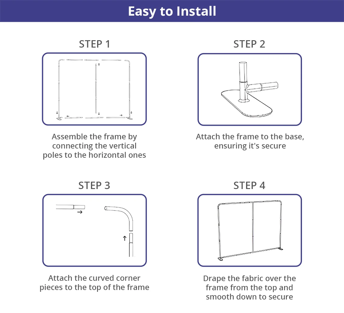Perfect for various environments like photo booths, corporate gatherings and business events, our trade show backdrop is versatile enough for both indoor and outdoor use. It's also easy to set up, enhancing convenience for any event. Maintenance is hassle-free, with the option to machine wash or hand wash, and it can be laid flat to dry, preserving its look. Bulk buying options offer extra savings, ensuring you get top-notch quality at the most competitive prices.